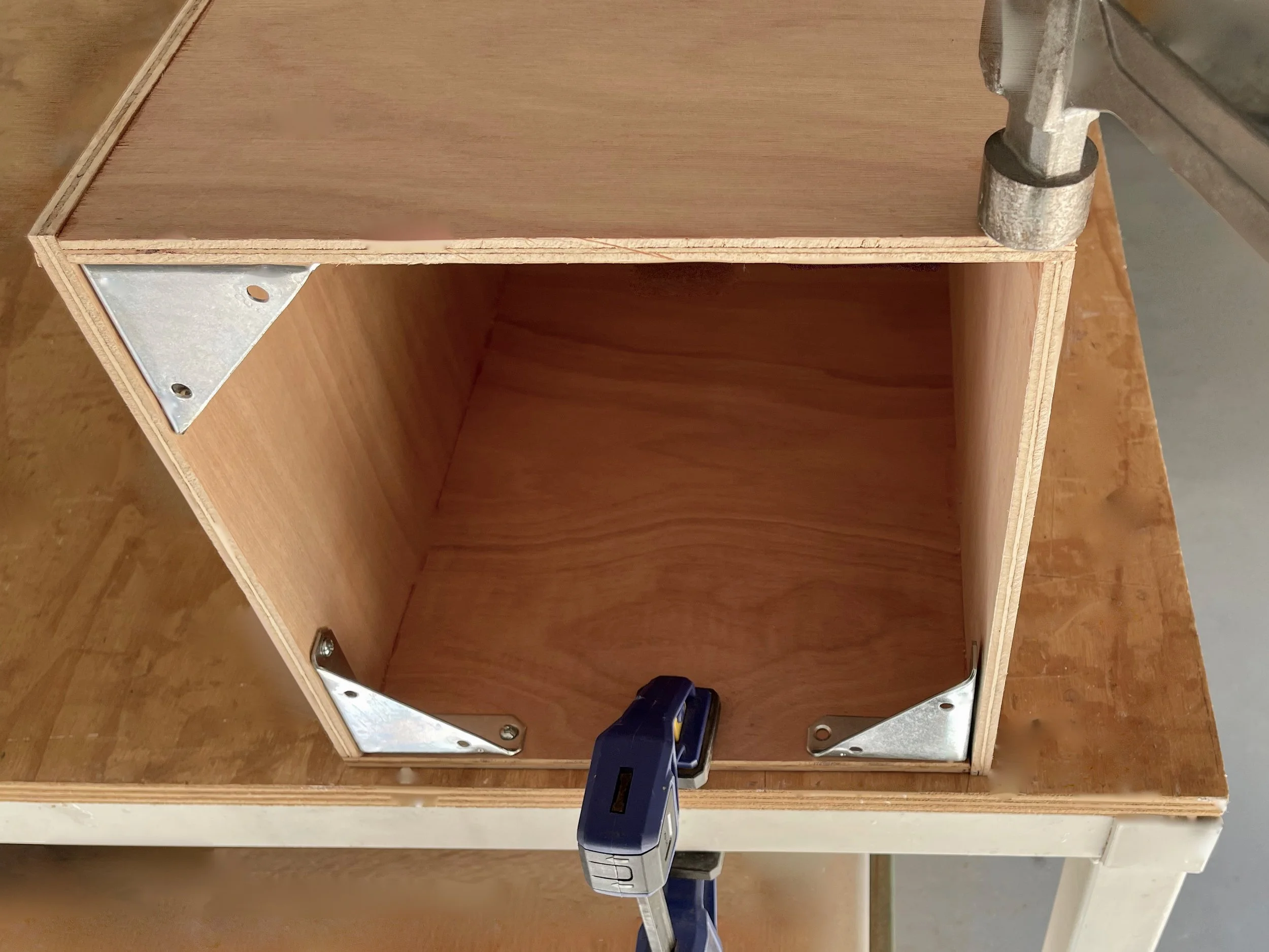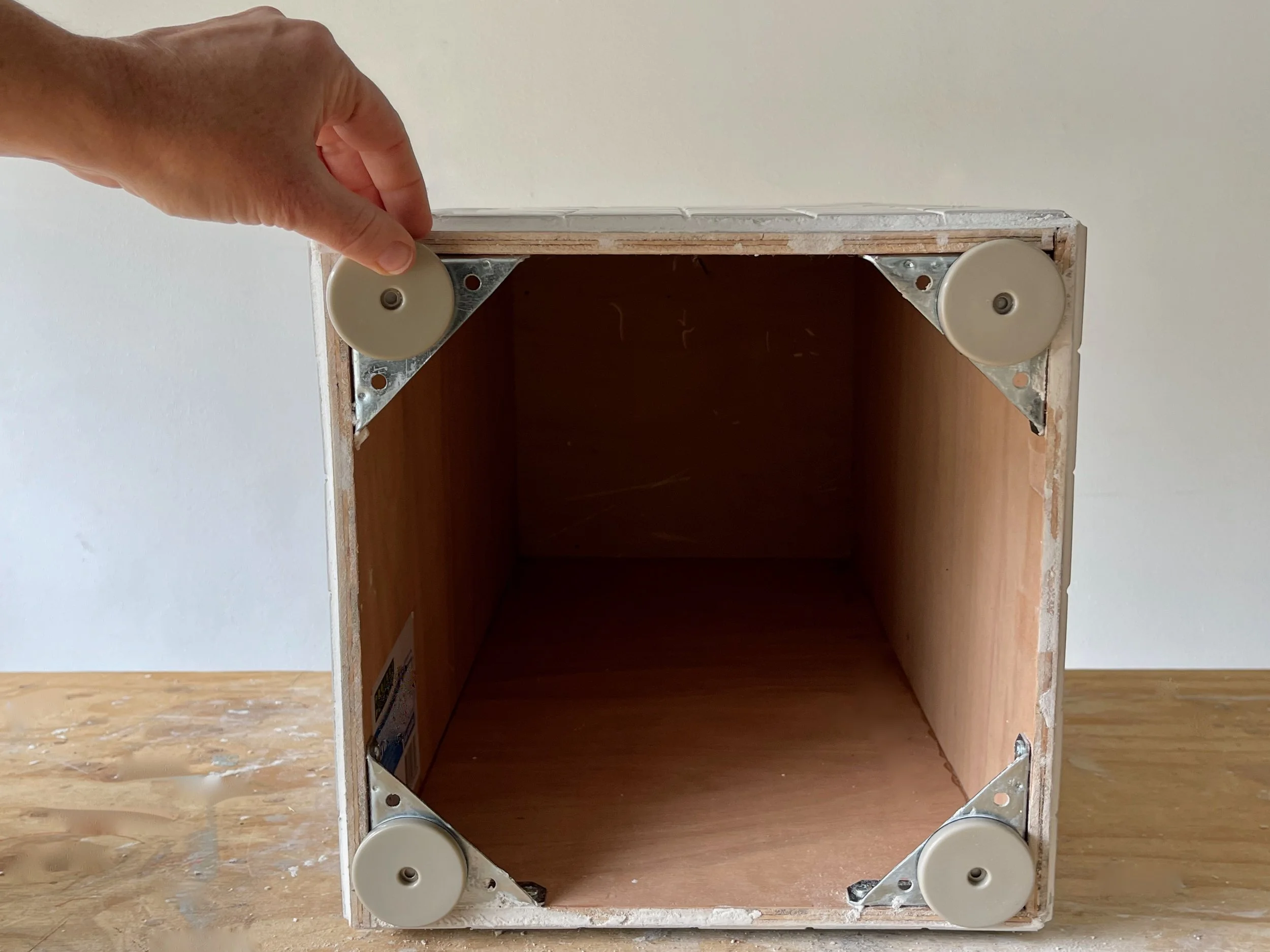 I added four tri-corner braces at the base of the boxes to keep them square while providing a platform for self-adhesive glides.