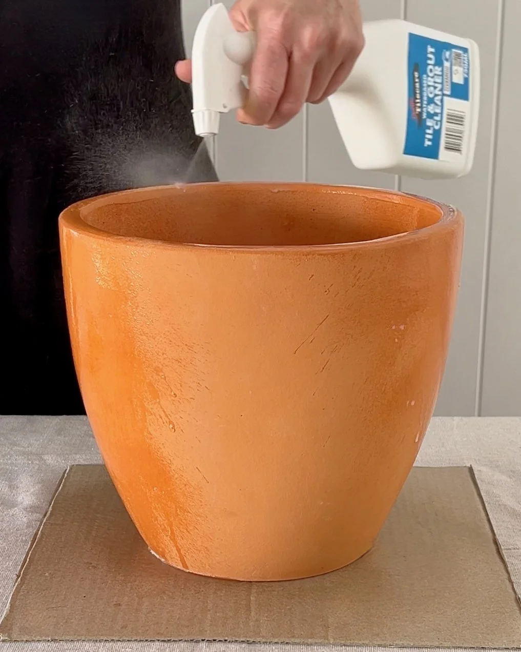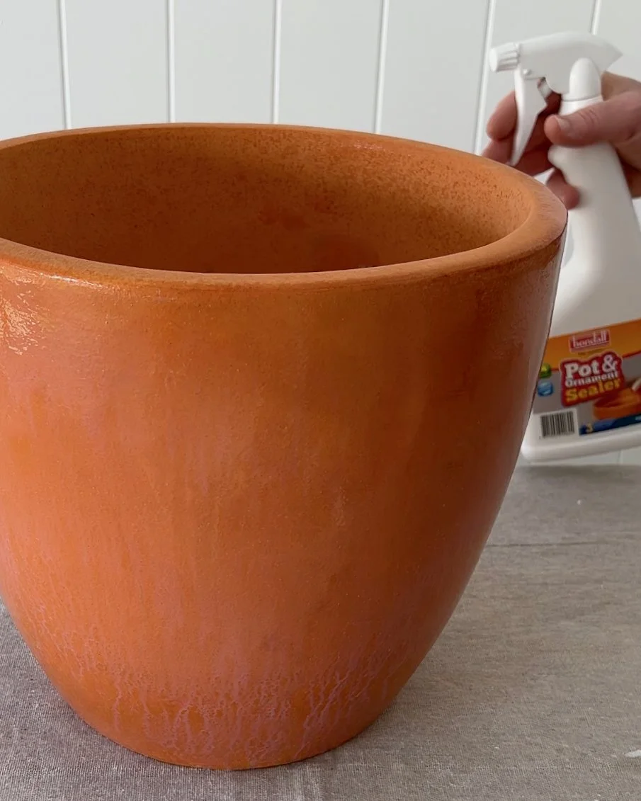 To seal, I spritzed Bondall Pot & Ornament Sealer all over, using a damp cloth to dab away any drips. I left the solution to penetrate and dry for about four hours.