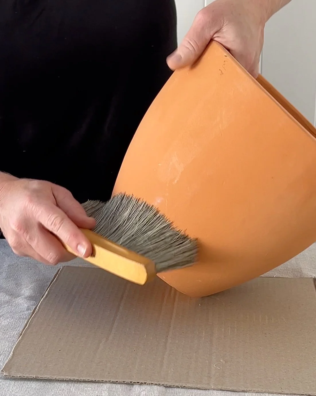 Working on a clean surface, I brushed the pots inside and out to remove any dust and debris.