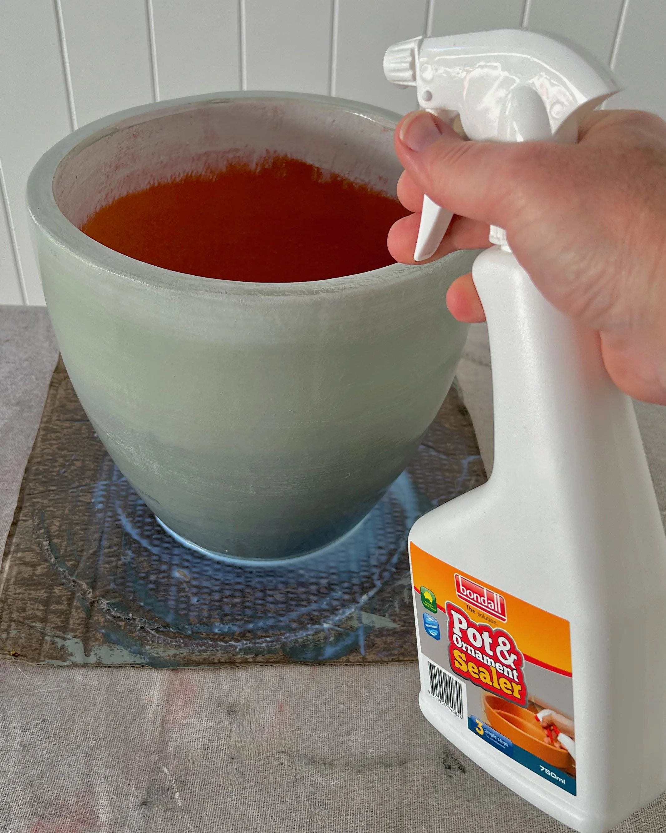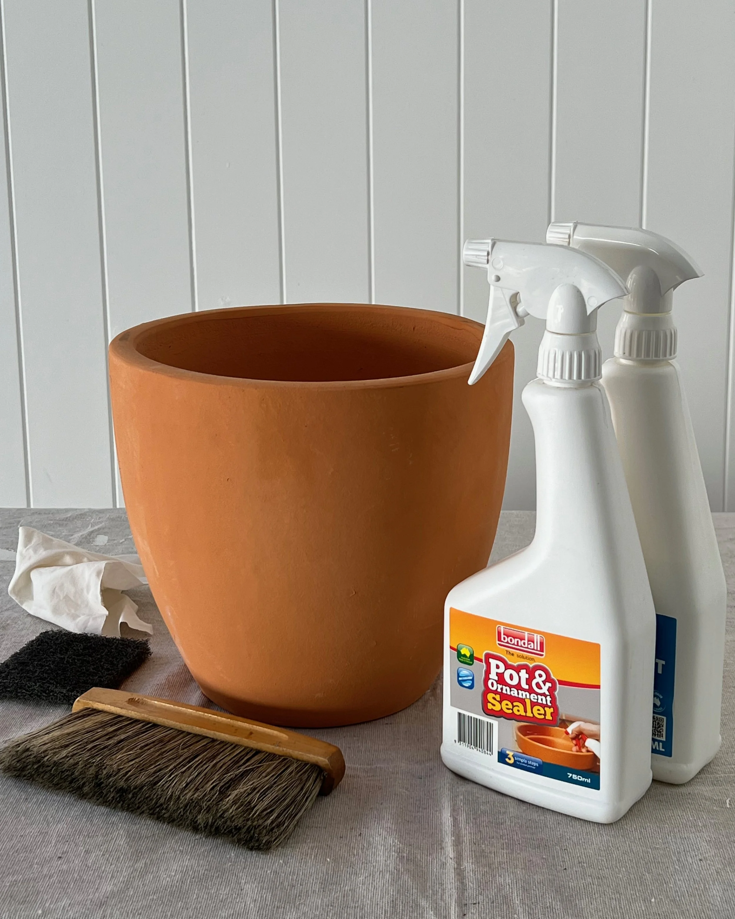 To ensure the porous pots were waterproofed to prevent staining, liming and mould, I used Bondall Pot & Ornament Sealer, which penetrates the terracotta to form a clear protective layer. It also increases the surface hardness to make the pots more durable.
