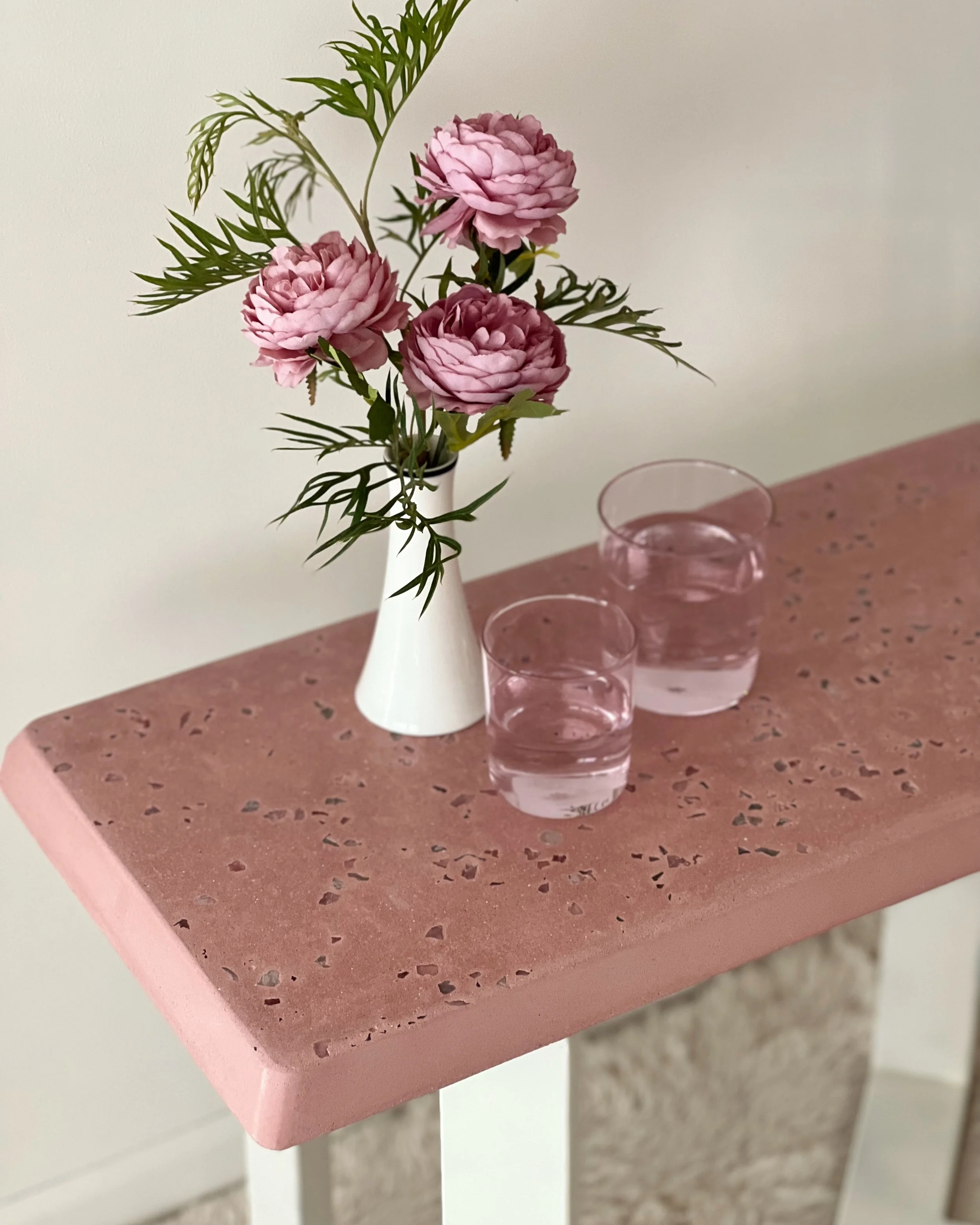Love the pink concrete? Add a little sparkle and turn it into terrazzo for furniture. Here’s how.