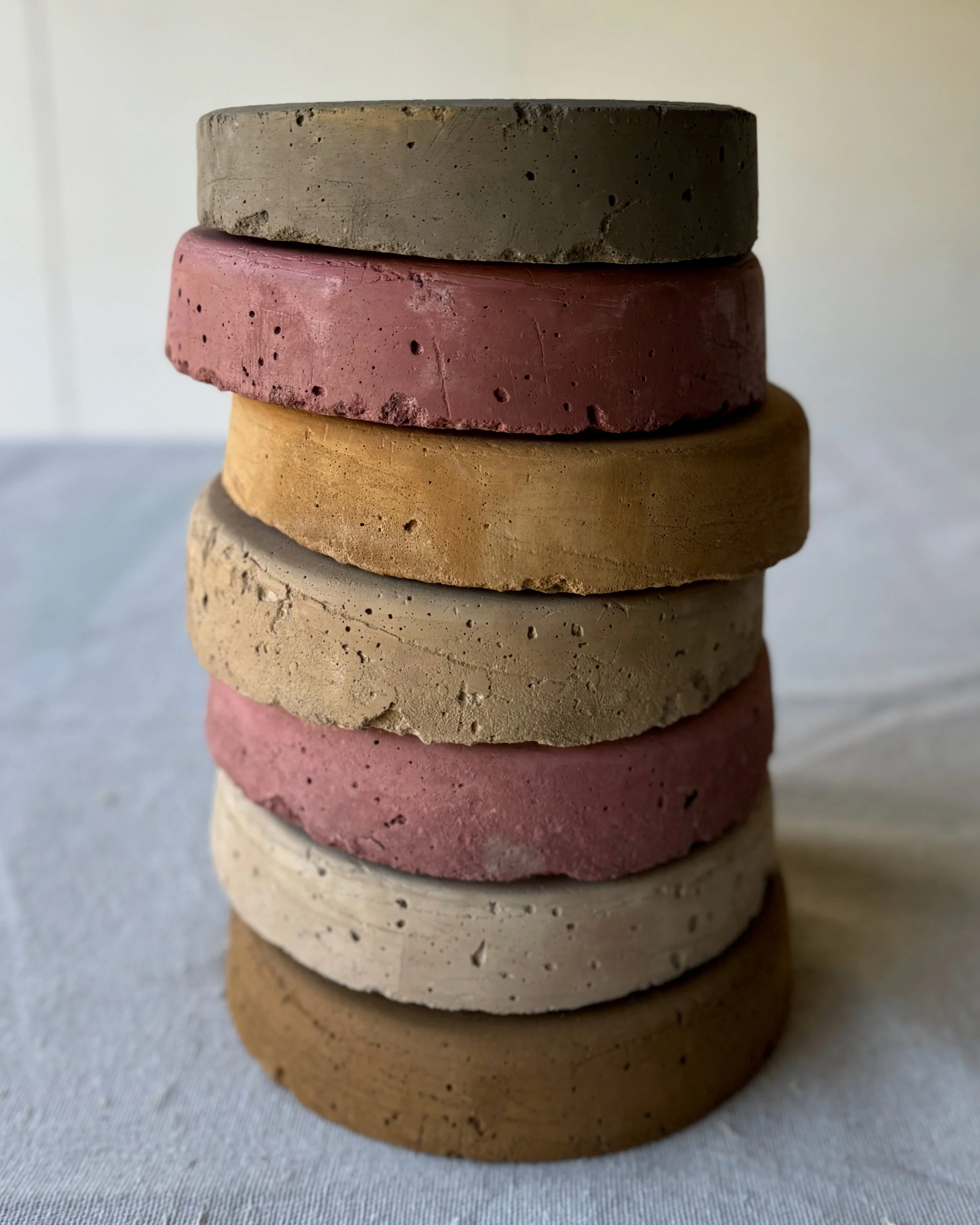 I used some inexpensive buckets, a bag of fast-setting concrete, coloured oxide and a bonding agent. Large measuring vessels are also useful for the Bondcrete-to-water ratios.