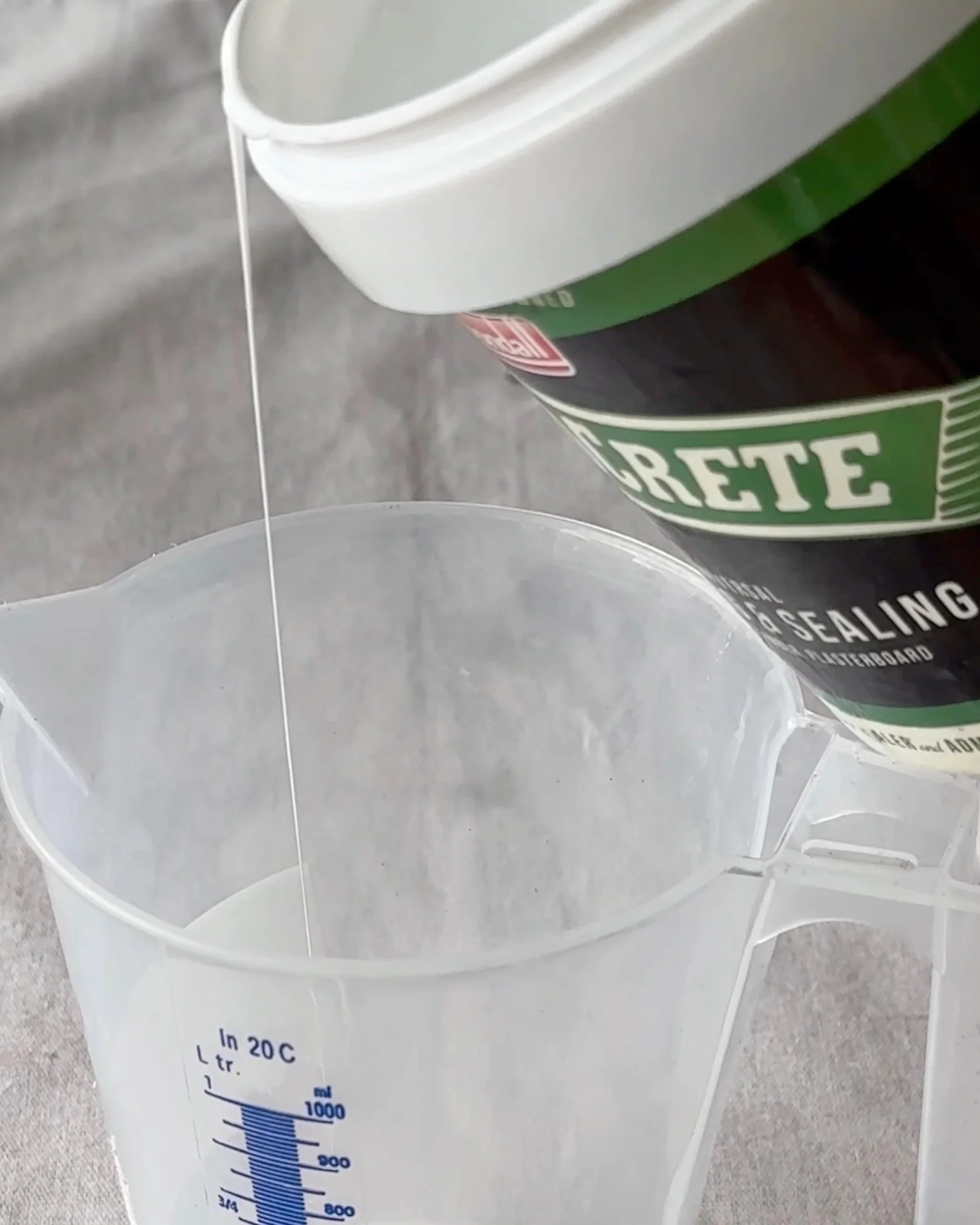 In a measuring jug, pour in one part Bondall Bondcrete Universal Bonding Agent (100ml) and 10 parts water (1L) and stir to combine.