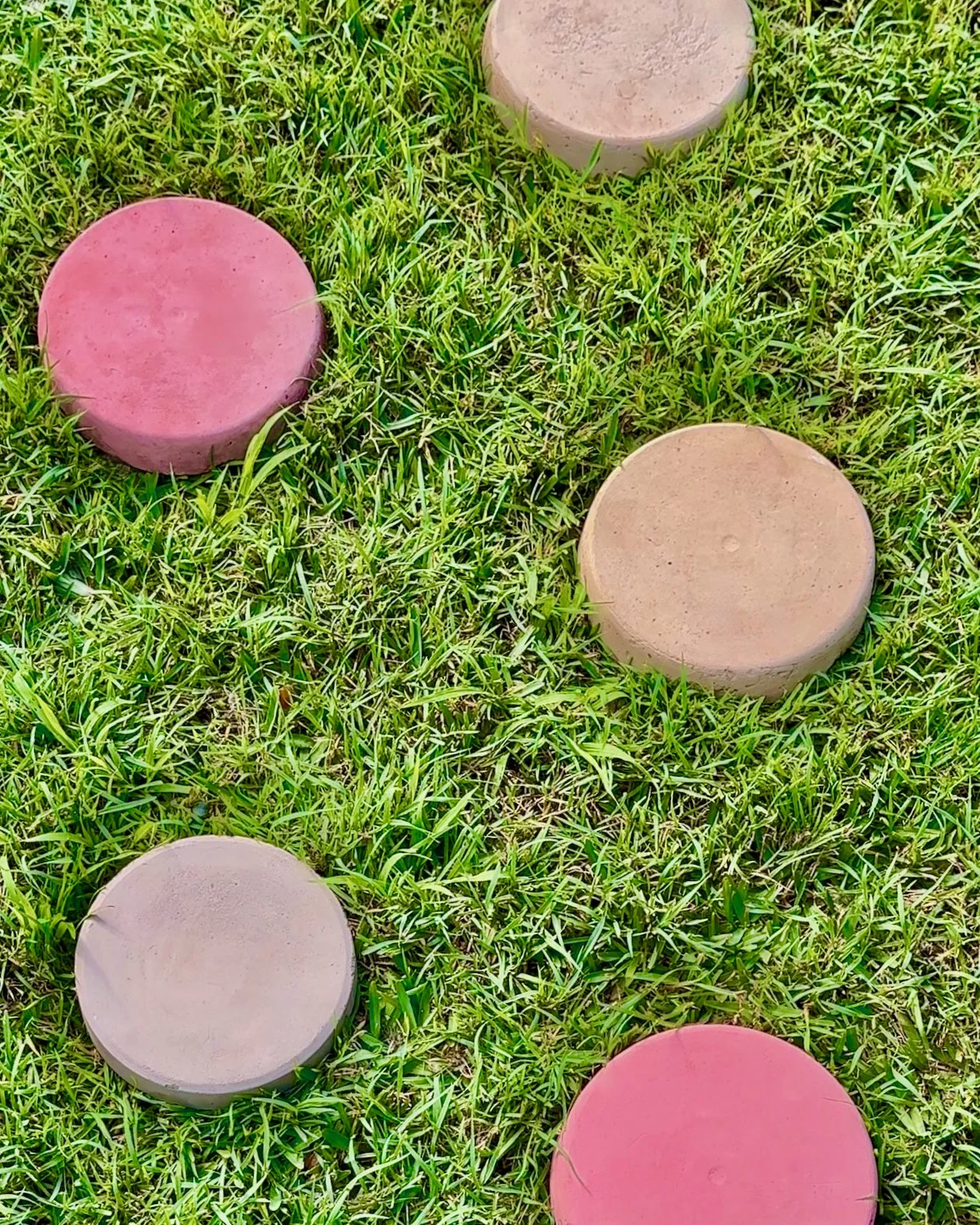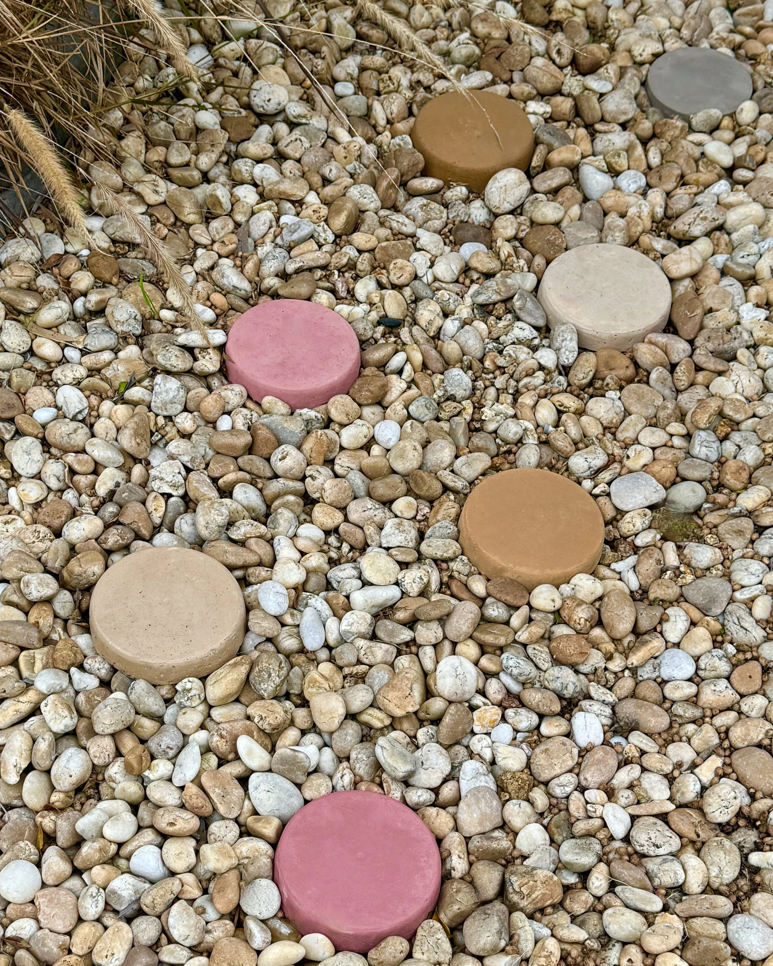 “Colourful stepping pavers made in a bucket? Why not? It’s a quick, low-cost project that adds some fun to landscaping.”