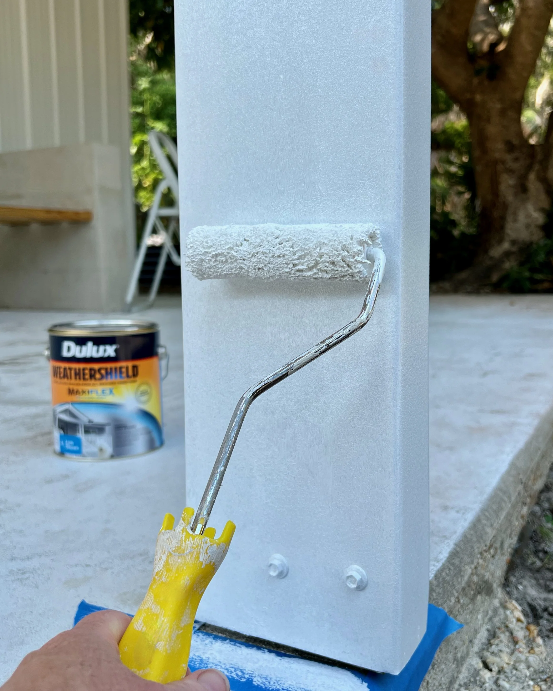 DIY TIP I can't go past painting grooved wall panels with mini rollers. They're lightweight and only need a small tray, making them easier to use up a ladder. I load the roller then run the tip down the grooves instead of using a brush to cut in. It's faster, with less cleaning up.