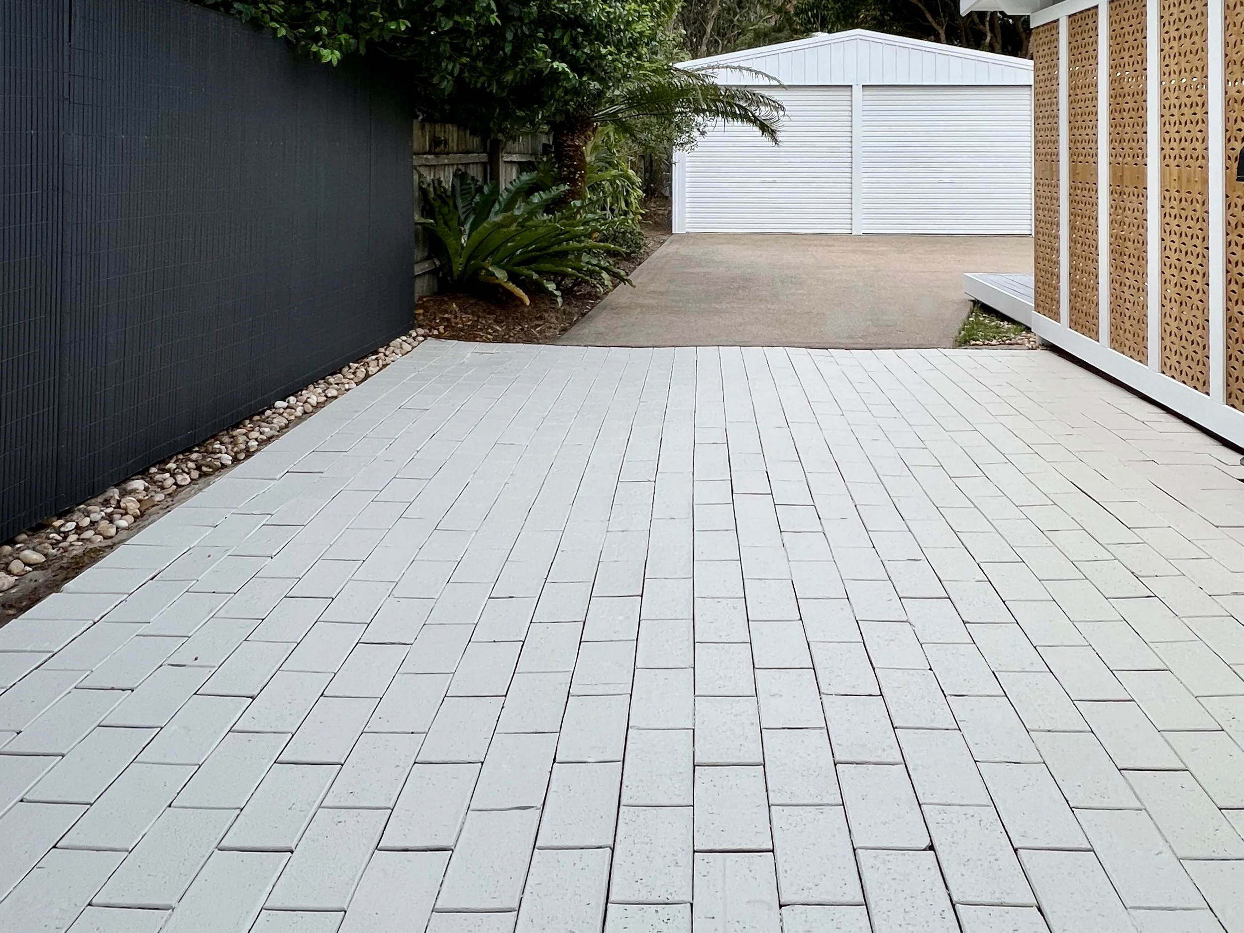 Before purchasing products, do the Dulux Concrete & Paving Surface Test to check if your pavers are bare or sealed. Pour on 30ml of water, wait 30 seconds, dab off the excess and check if it has soaked in. Soaked in means it’s bare, but still on the surface indicates sealed. This will determine which products to choose from the Dulux Concrete & Paving range.