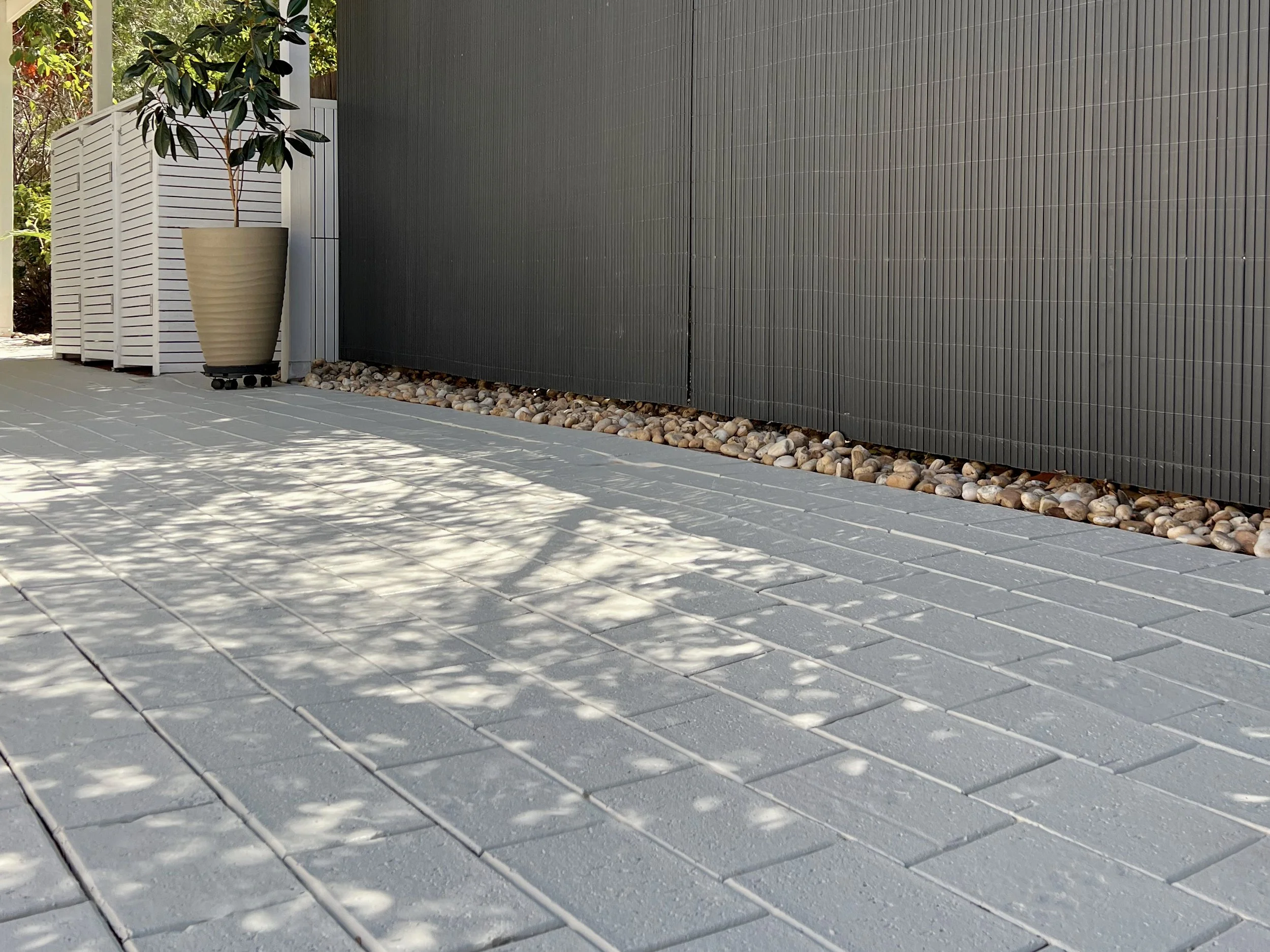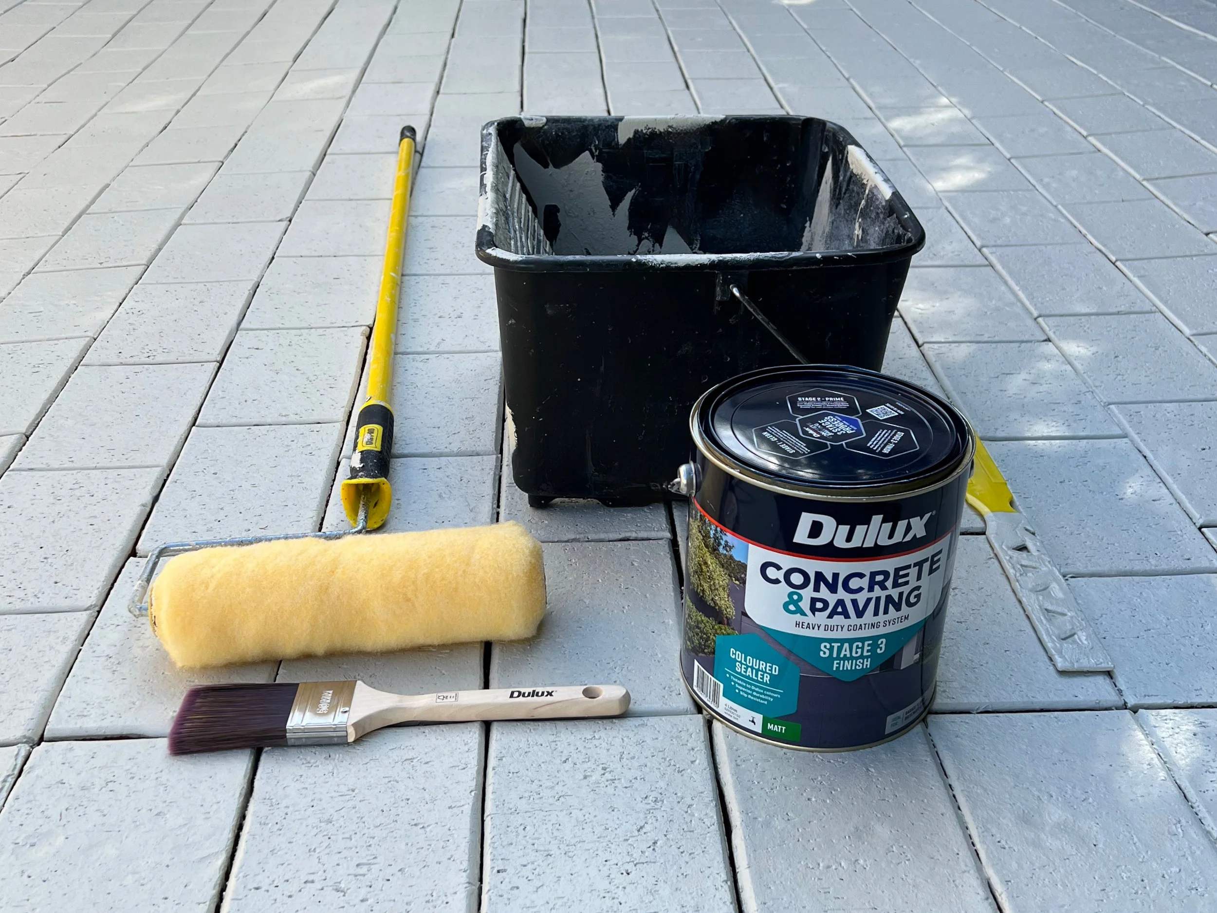 I wanted to modernise this outdoor area and make it easy to keep clean. For a simple weekend makeover, I used the Dulux Concrete & Paving three-stage system, finishing in a sealer tinted to match the surrounding concrete.