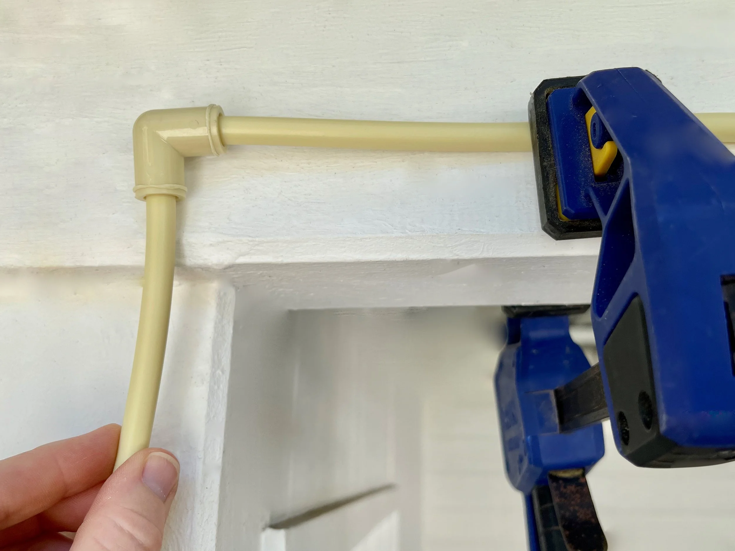 TIP I began at the far end to secure elbow connector, then gently pulled the pipe and clamped it to the beam to work on each section.