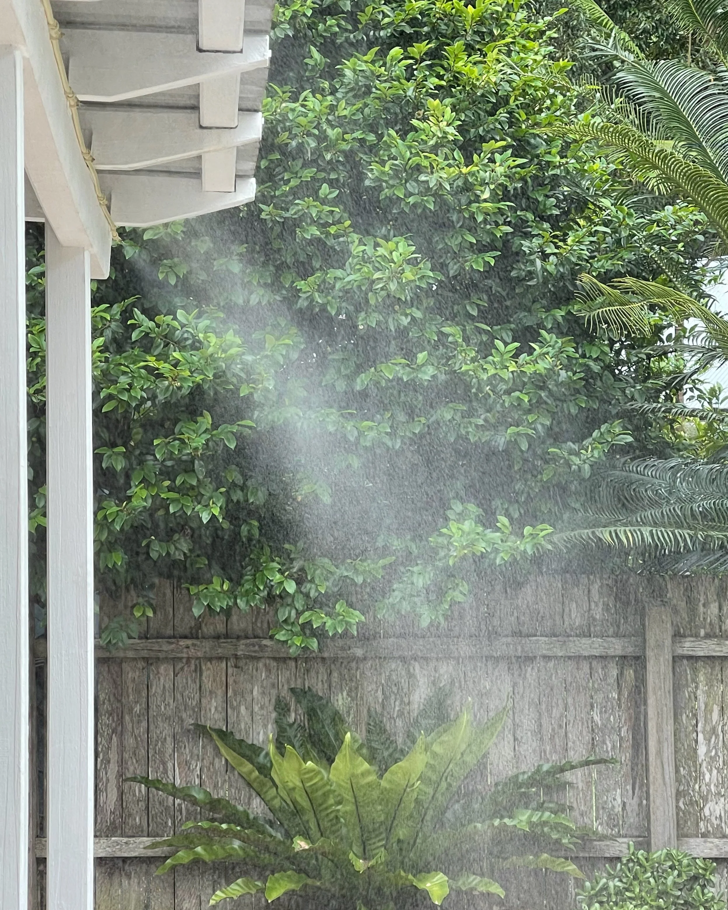 It’s been a super hot summer so I installed a misting system that instantly cools the outdoor area with a fine curtain of misty spray. It also reminds me of being on holiday in Palm Springs!