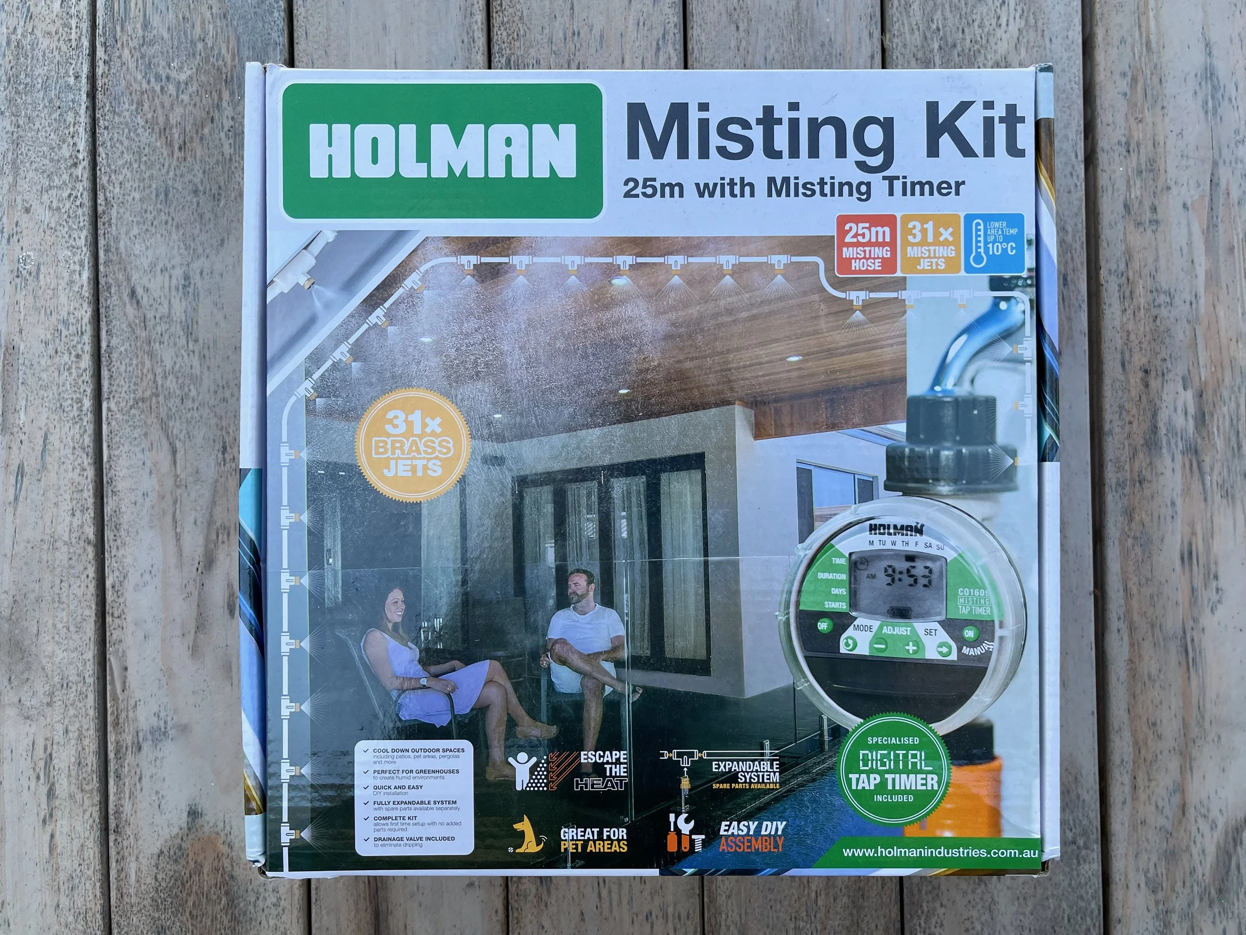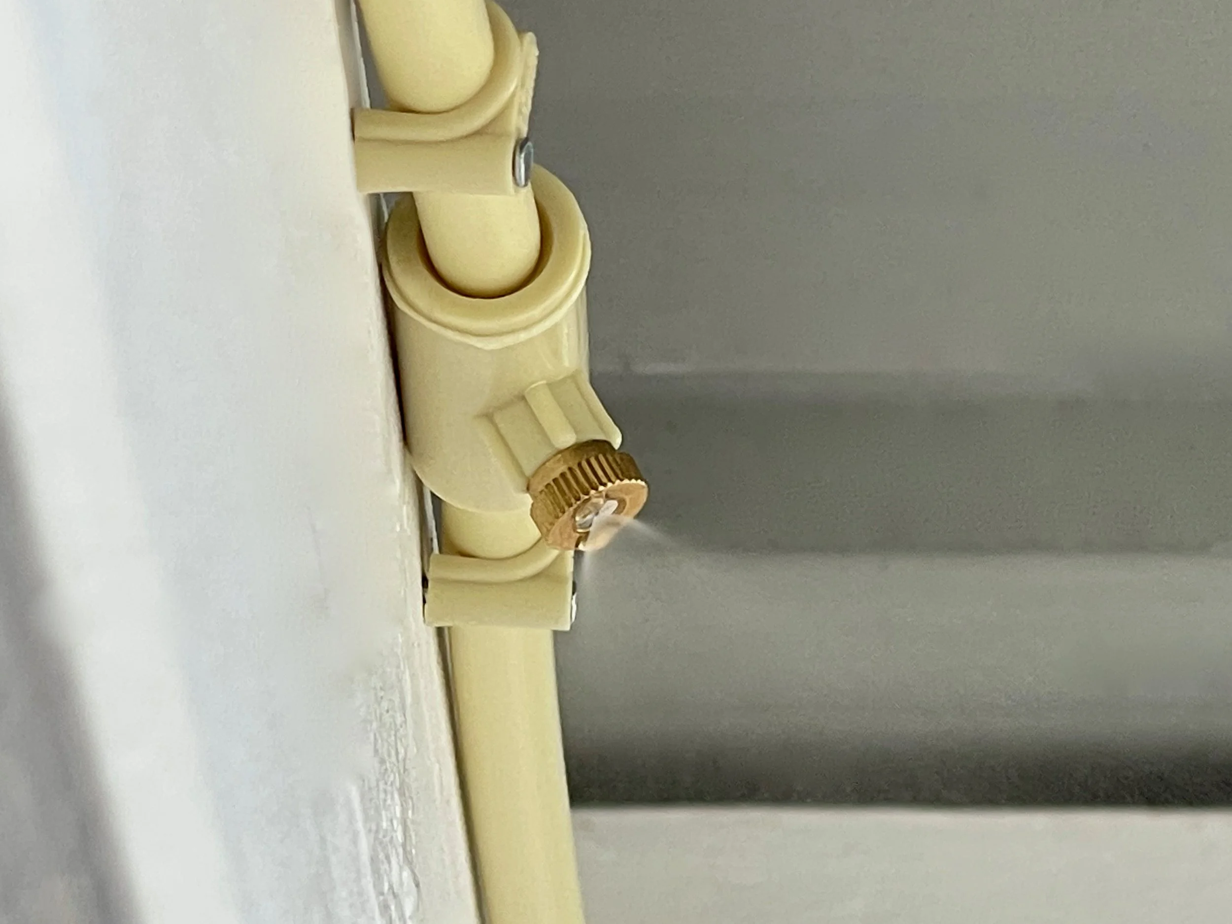 To set up the misting system, I picked up a kit with 25m of pipe to fit my space. It included a filter to keep out debris and an auto-drain valve to prevent dripping when it’s turned off.